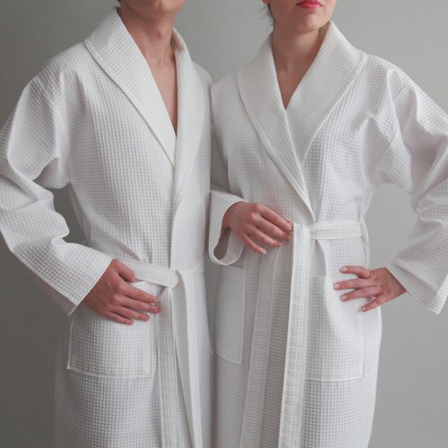 - Exquisite Hotel Quality Waffle Weave Bathrobe in pure white color;