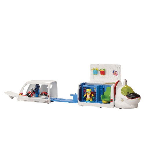 Wooo! Wooo! R. R. Rapide is racing down the tracks to deliver Oso at his next big assignment. This high-speed rail car is full of surprises! Inside, discover a special agent command center; equipped with an automatic jet pack loader, an elevator captain’s chair, an expandable central car, and a motorcycle launcher! Magnetic activation points trigger electronic lights, sounds, and character voices from the show!