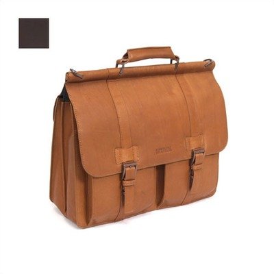 524451 Color: Dark Brown Shown in TanFeatures: -Available in Dark Brown and Tan. -Soft full grain cowhide leather exterior. -Front compartment features a padded laptop pocket to accommodate most 15.4'' laptops. -Large double gusset dowel rod construction. -Front gusset pockets have organizer features, including a cell phone pocket. -Rear compartment features easy access magnetic snap closure. -Full length rear open pocket. -Removable, adjustable and padded shoulder strap. -Dimensions: 14''H x 16''W x 5.5''D.