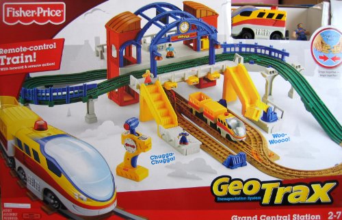 - Fisher Price Geo Trax Grand Central Station Remote Control Train Set is a 2008 Fisher Price Mattel production.